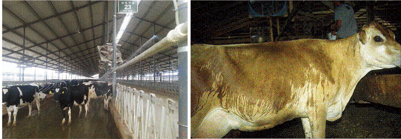 2.熱應(yīng)激狀態(tài):夏季氣候炎熱,空氣潮濕,易引起奶牛熱應(yīng)激,當(dāng)奶牛承受的熱量超過(guò)它所能散發(fā)排除的熱量時(shí),即處于熱應(yīng)激狀態(tài)。