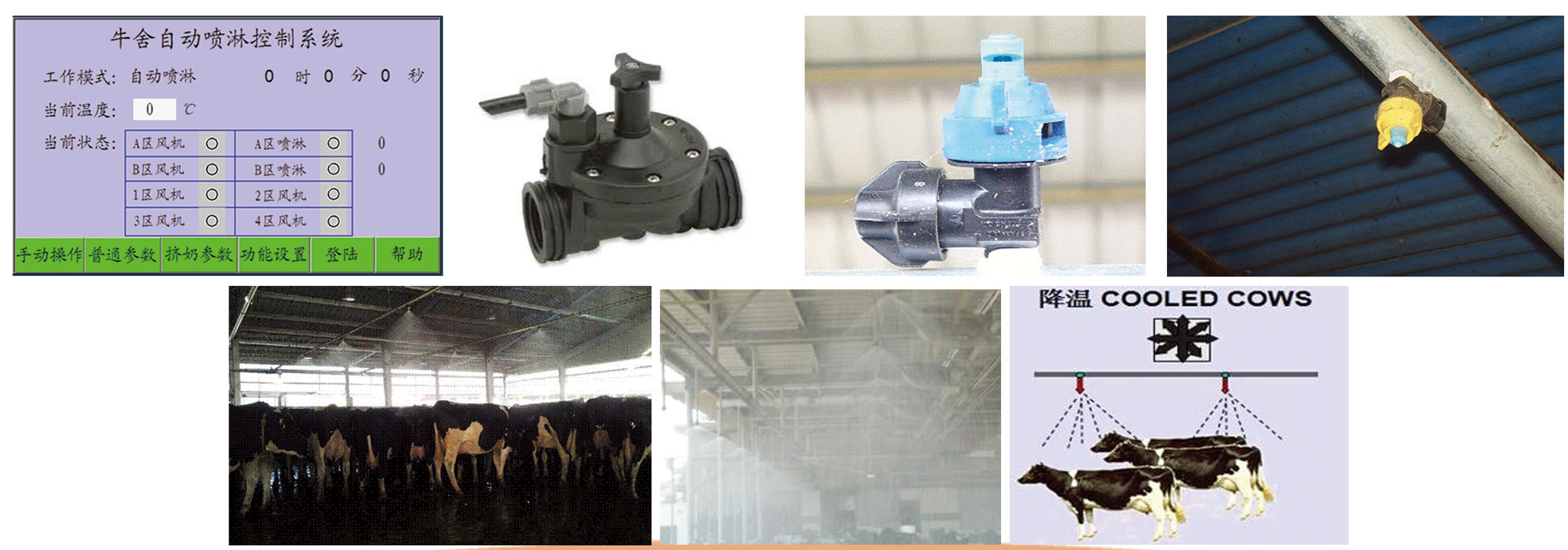 1.智能控制器:智能控制就是對(duì)噴淋時(shí)間和噴淋周期的控制,,依據(jù)環(huán)境條件調(diào)整噴淋周期,輸出24V控制電壓控制噴淋系統(tǒng),在實(shí)現(xiàn)合理有效噴淋降溫的同時(shí)節(jié)約用水量,智能控制器可分別控制二到四個(gè)區(qū)域的噴淋運(yùn)行,即依據(jù)四個(gè)不同區(qū)域的溫度傳感器的反饋信息自動(dòng)操控噴淋周期的開啟和關(guān)閉。