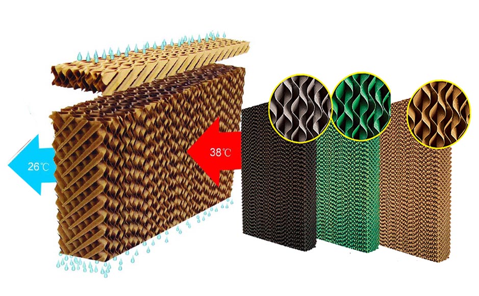 1.濕簾是由原紙加工生產(chǎn)而成,通常有波高5mm、7mm和9mm三種,波紋為60°*30°交錯對置,45°*45°交錯對置。